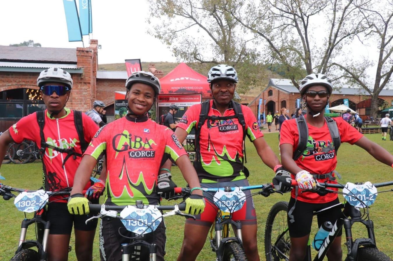 From left: Giba Gorge’s Vincent Ngcobo, Falakhe Msweli, Richard Hlongwana and Kwanele Ntombela at the start of sani2c 2024.